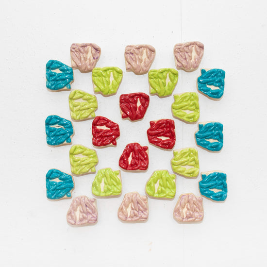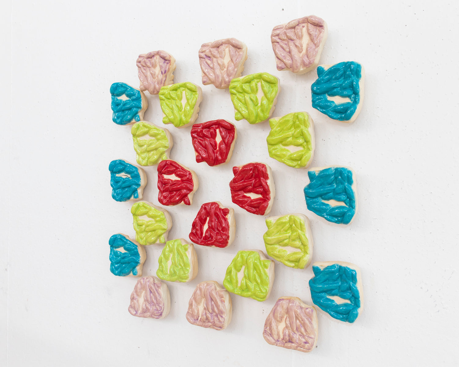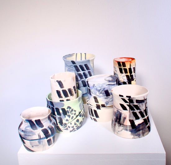 ”Camera Roll.” Acrylic on wheel thrown stoneware. Dimensions vary. 2022.