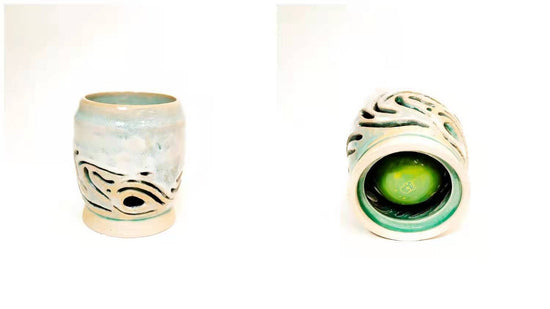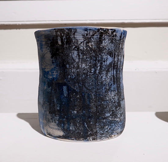“Sea Foam double-walled cup.” Wheel thrown stoneware with glaze. 4”x4”x5”. 2022.
