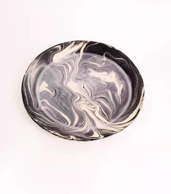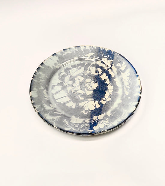”Marbled Plate 01.” Marbled stoneware with glaze. 10”x10”. 2022.